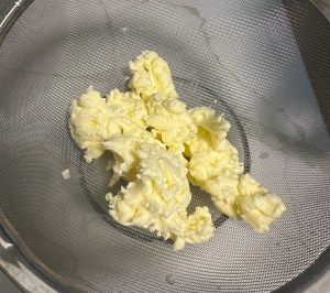 - Strain butter from buttermilk. Save buttermilk for other recipes.